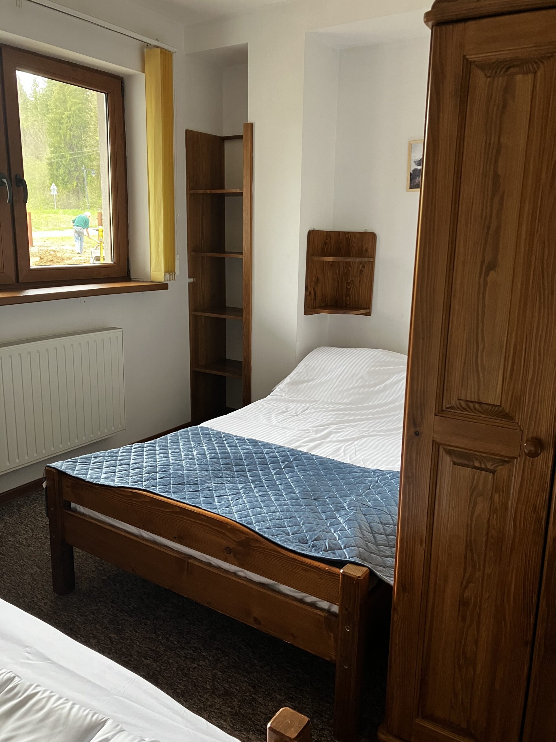 Nasz czteroosobowy pokój oferuje cztery wygodne, pojedyncze łóżka, zapewniające każdemu gościowi spokojny sen i regenerację sił po dniu pełnym przygód w górach. Wnętrze pokoju zdobią elementy nawiązujące do lokalnej kultury i natury, co sprawia, że każdy moment spędzony tutaj przesiąknięty jest duchem Pienin.